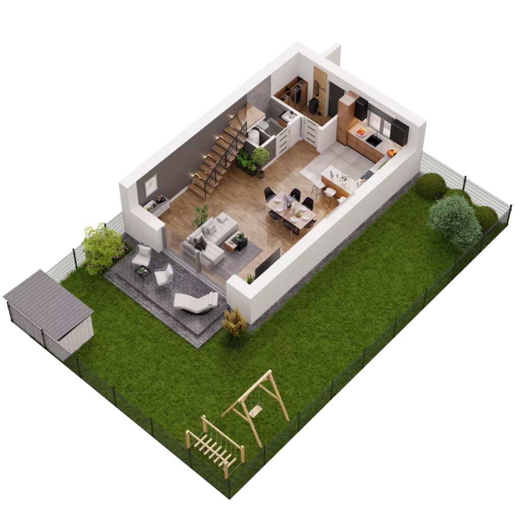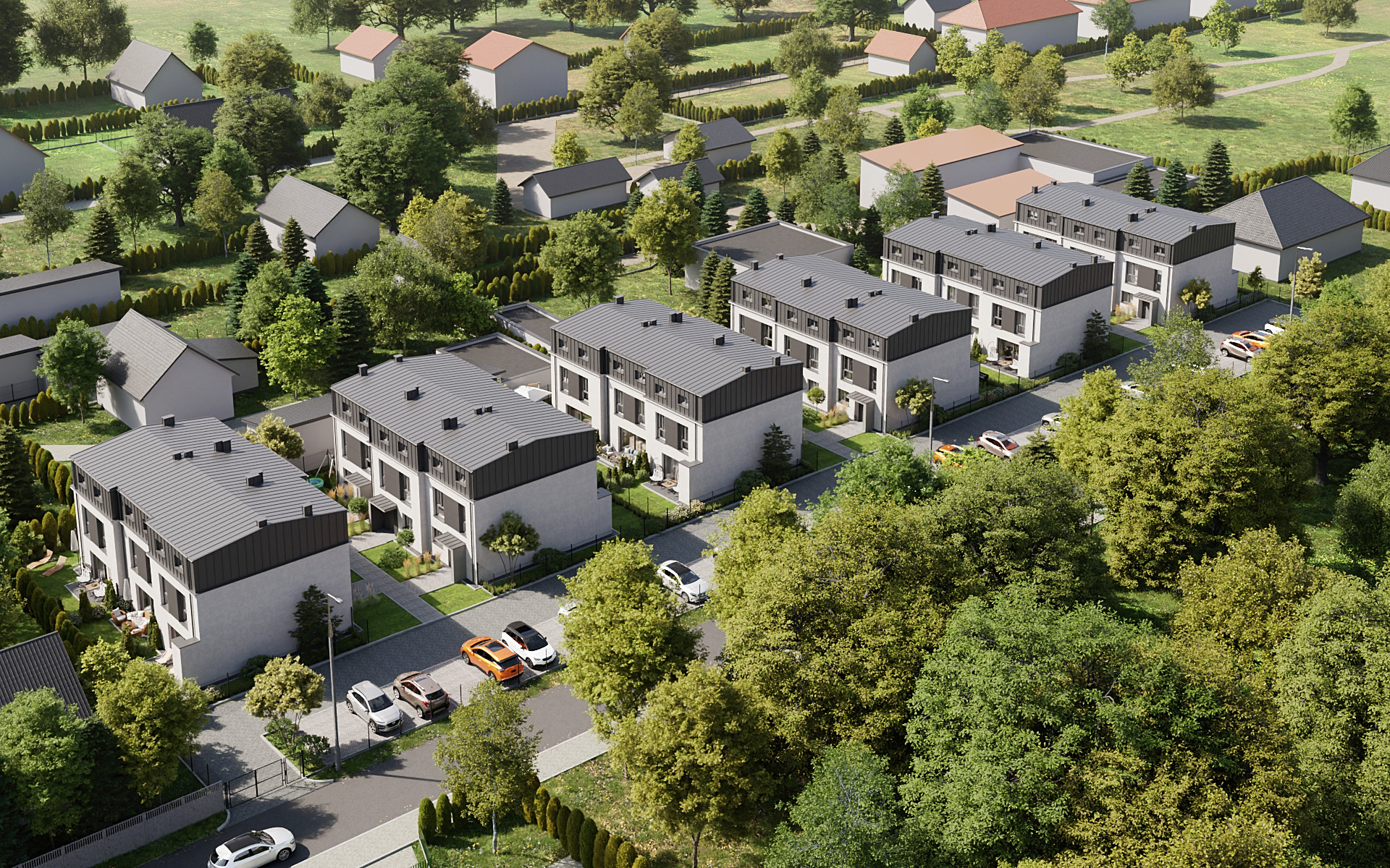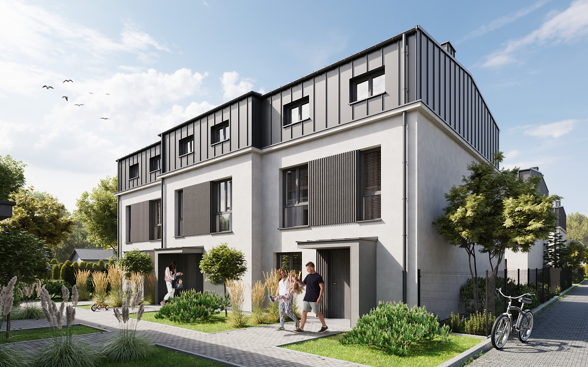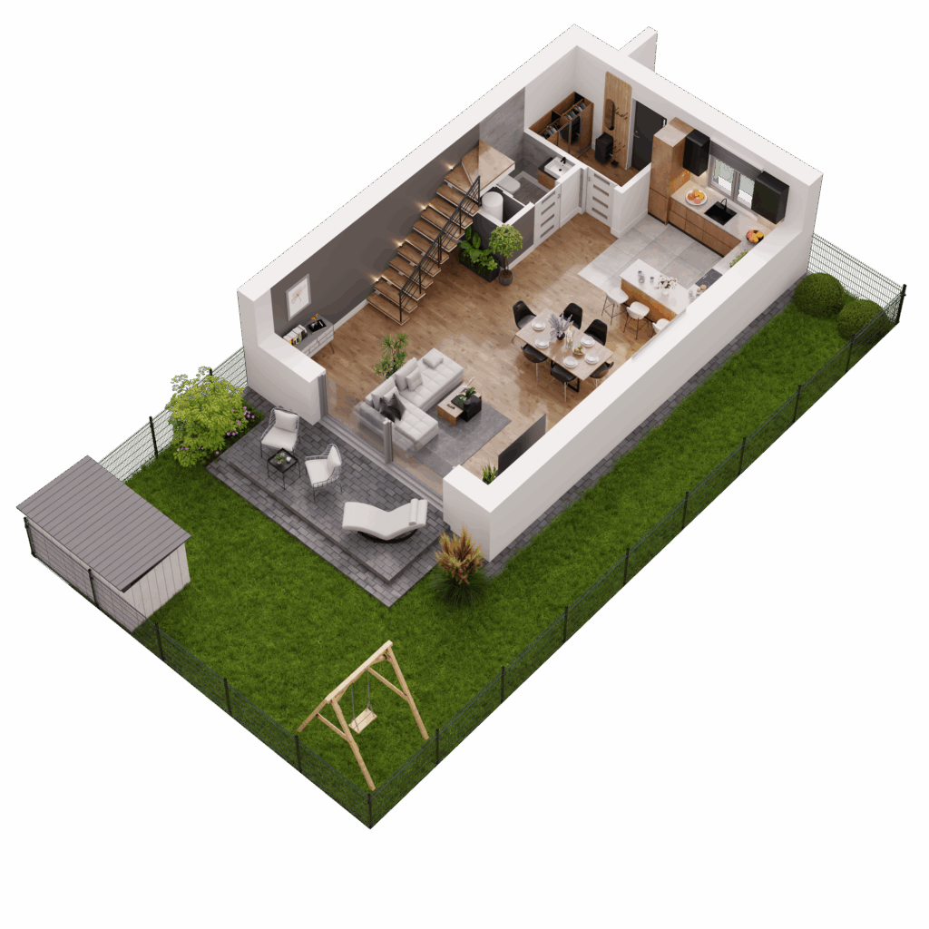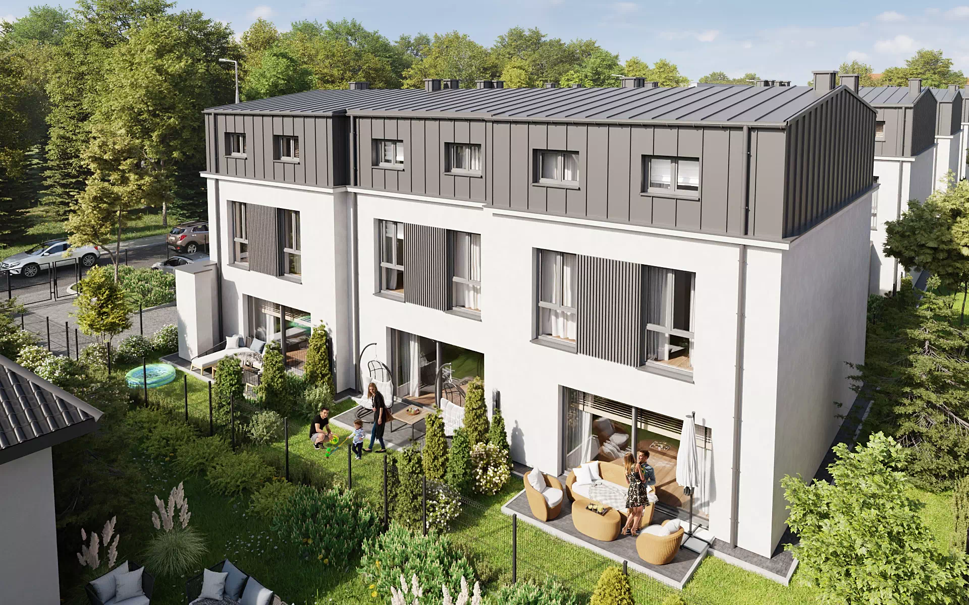 Każdy dom w Novej Przylaszczkovej ma swój prywatny ogród z tarasem, gdzie możesz zrelaksować się po intensywnym dniu, napić się porannej kawy lub spędzać czas z bliskimi. To idealna przestrzeń na letnie przyjęcia, zabawy z dziećmi czy domowy ogródek. Bliskość natury oraz sąsiedztwo lasu sprawiają, że powietrze jest tu czystsze o każdej porze roku. Gdy otworzysz okno usłyszysz kojący śpiew ptaków, a wnętrza domu wypełni zapach drzew.