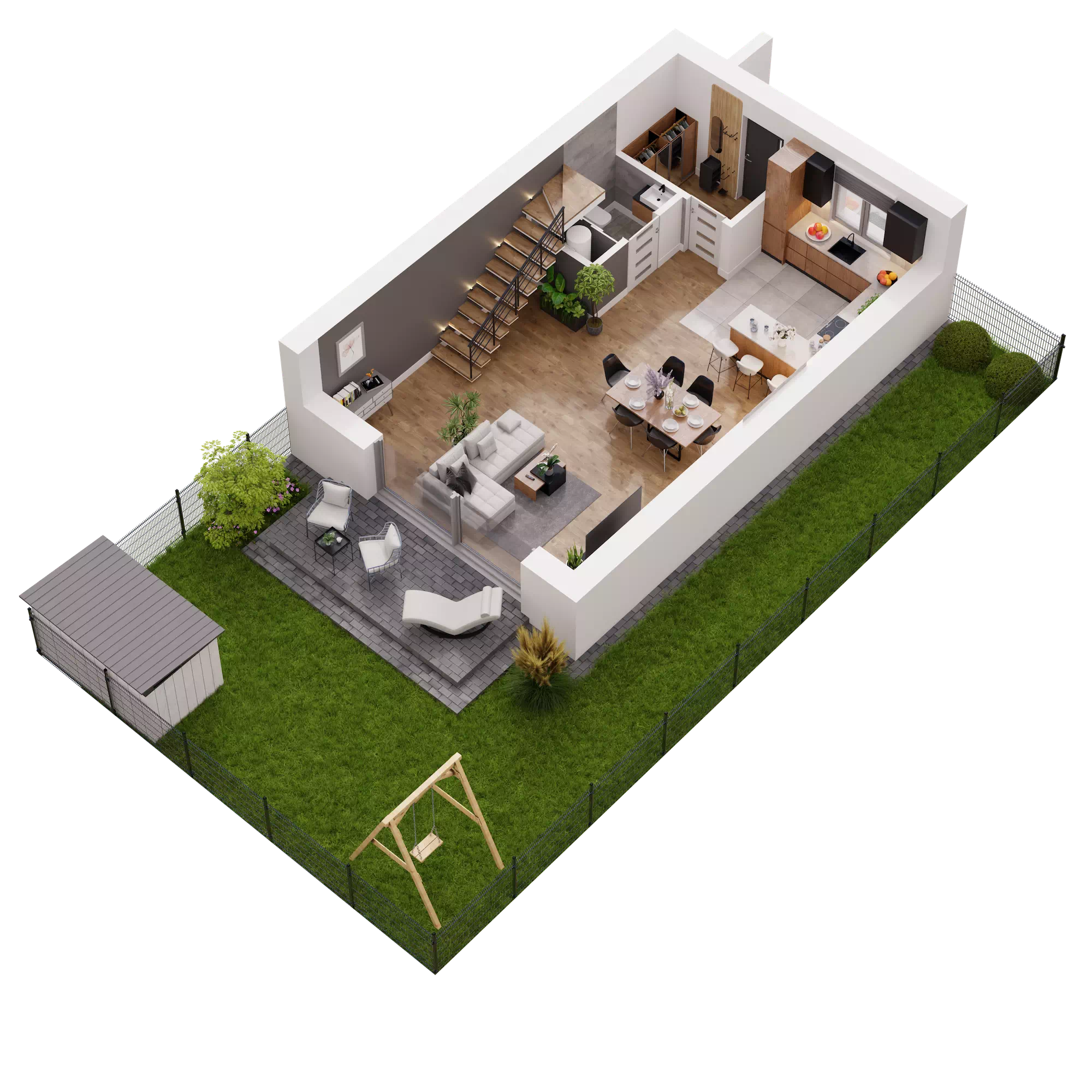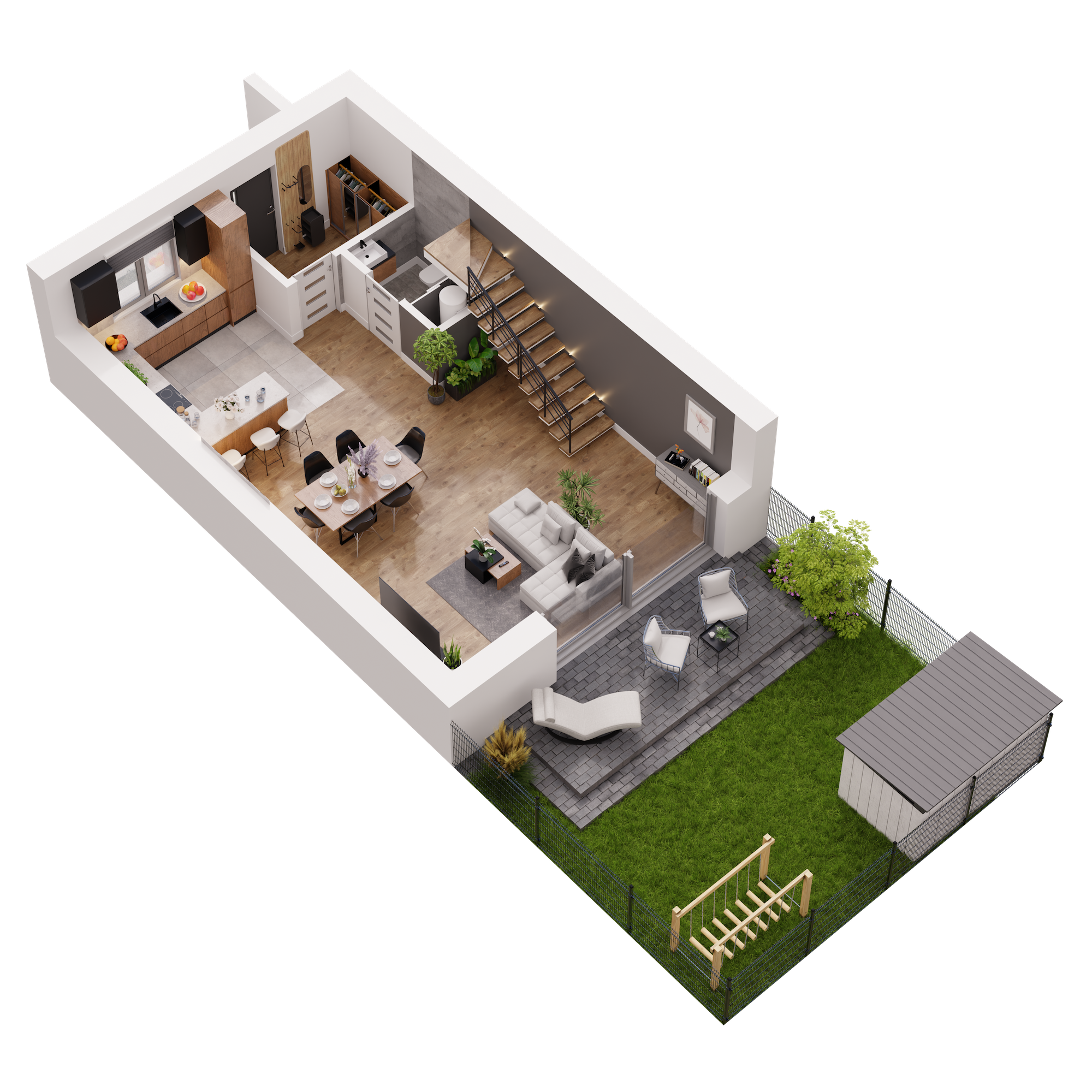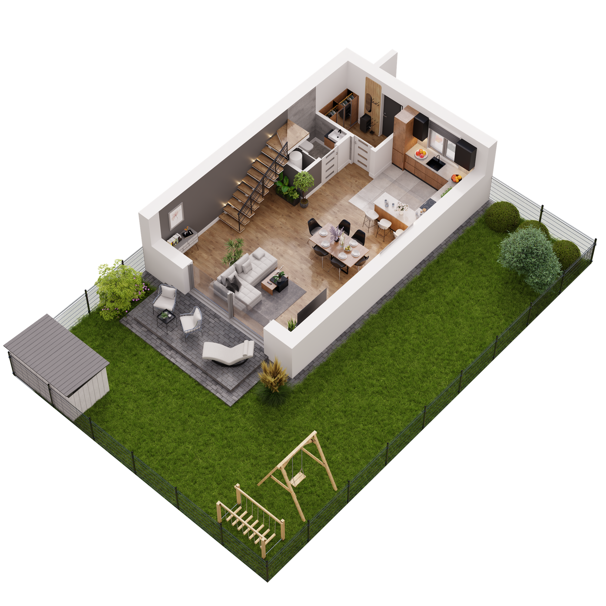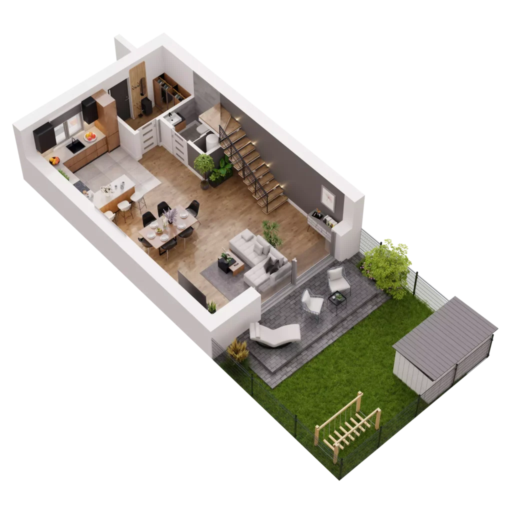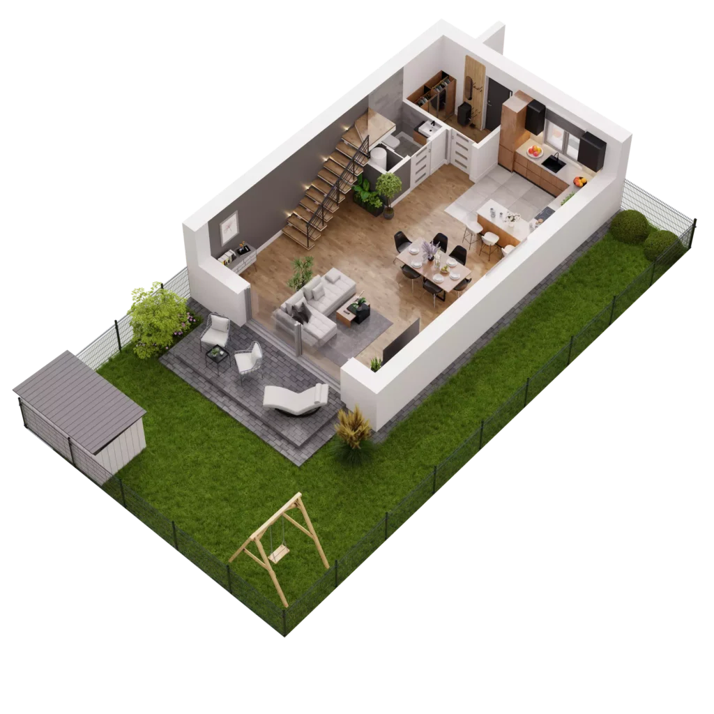 Każdy dom w Novej Przylaszczkovej ma swój prywatny ogród z tarasem, gdzie możesz zrelaksować się po intensywnym dniu, napić się porannej kawy lub spędzać czas z bliskimi. To idealna przestrzeń na letnie przyjęcia, zabawy z dziećmi czy domowy ogródek. Bliskość natury oraz sąsiedztwo lasu sprawiają, że powietrze jest tu czystsze o każdej porze roku. Gdy otworzysz okno usłyszysz kojący śpiew ptaków, a wnętrza domu wypełni zapach drzew.
