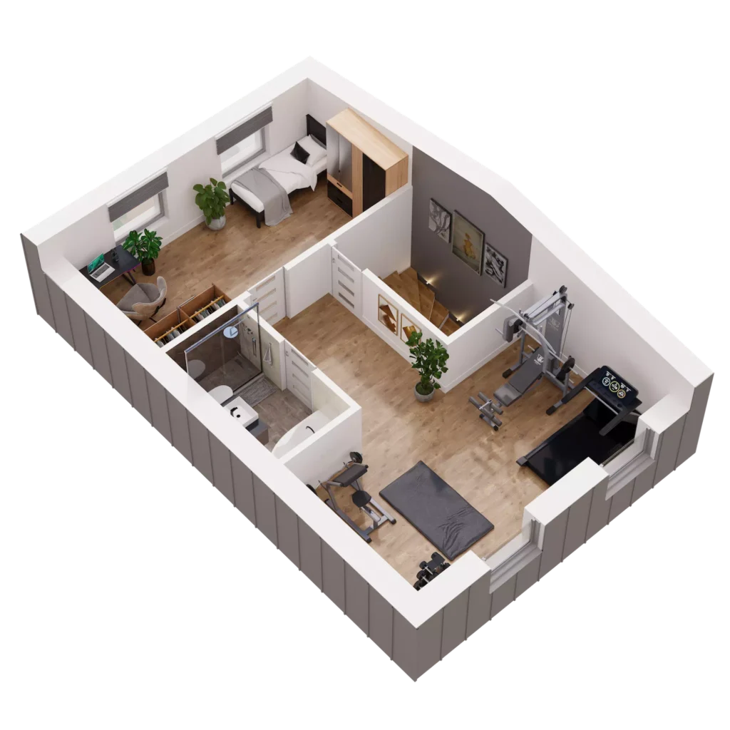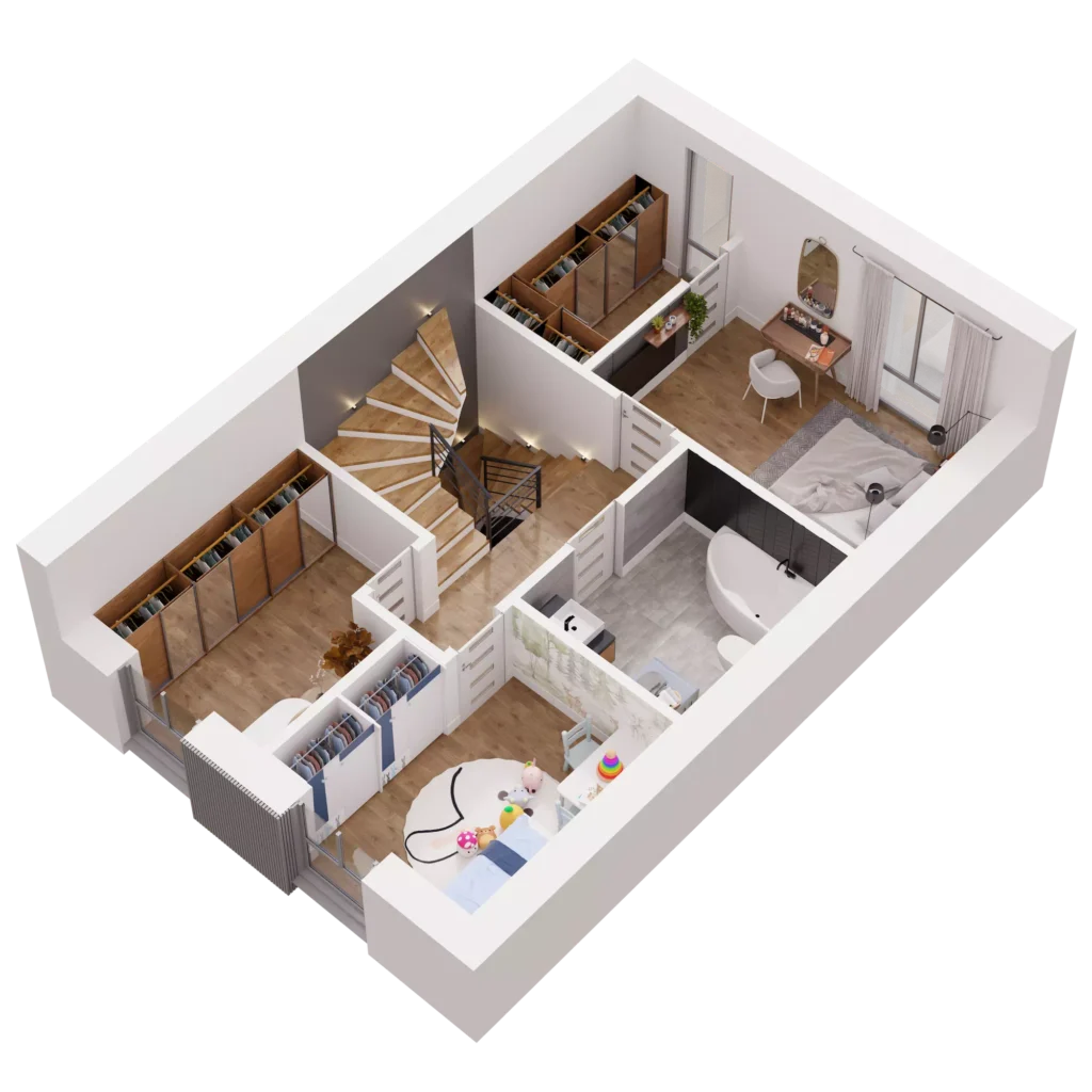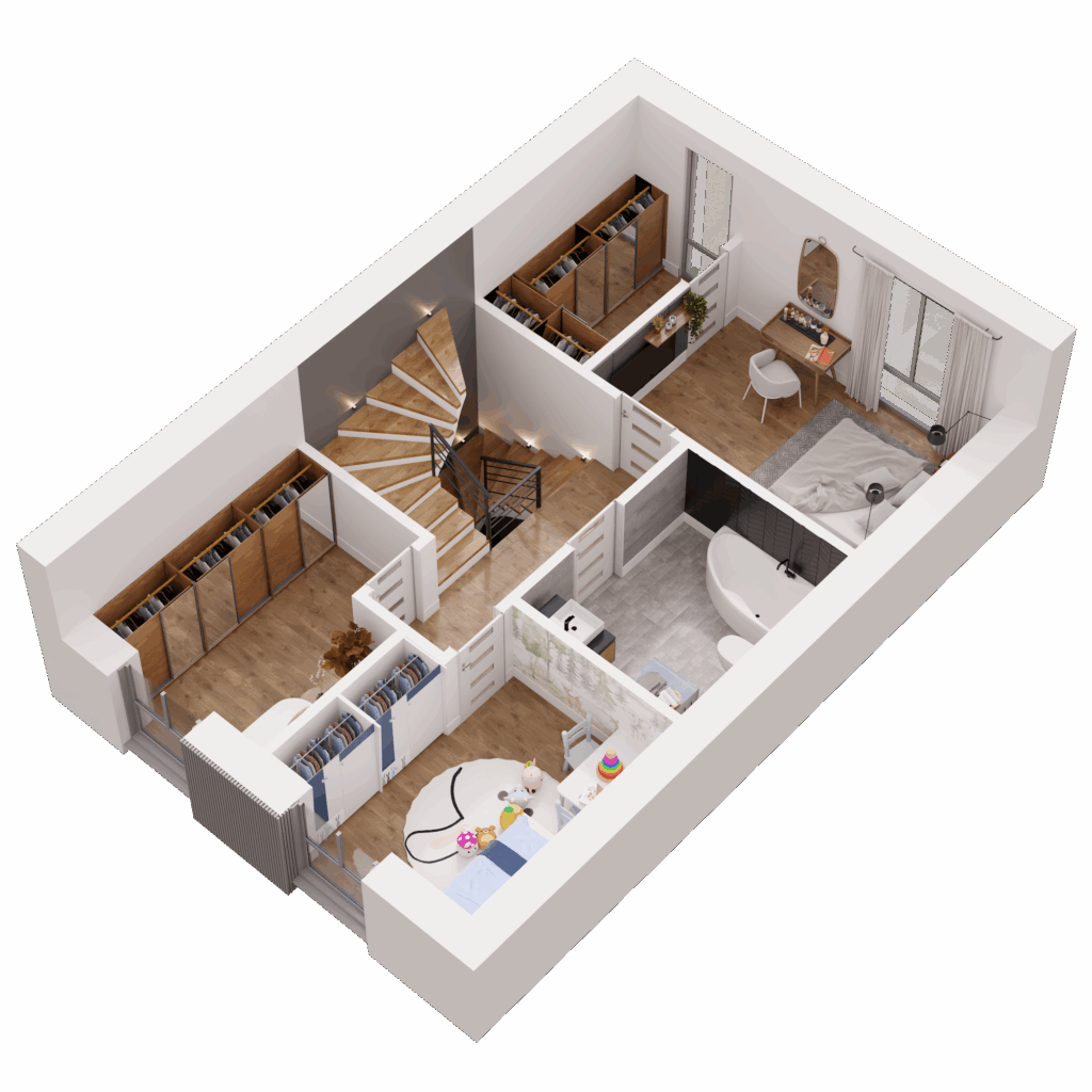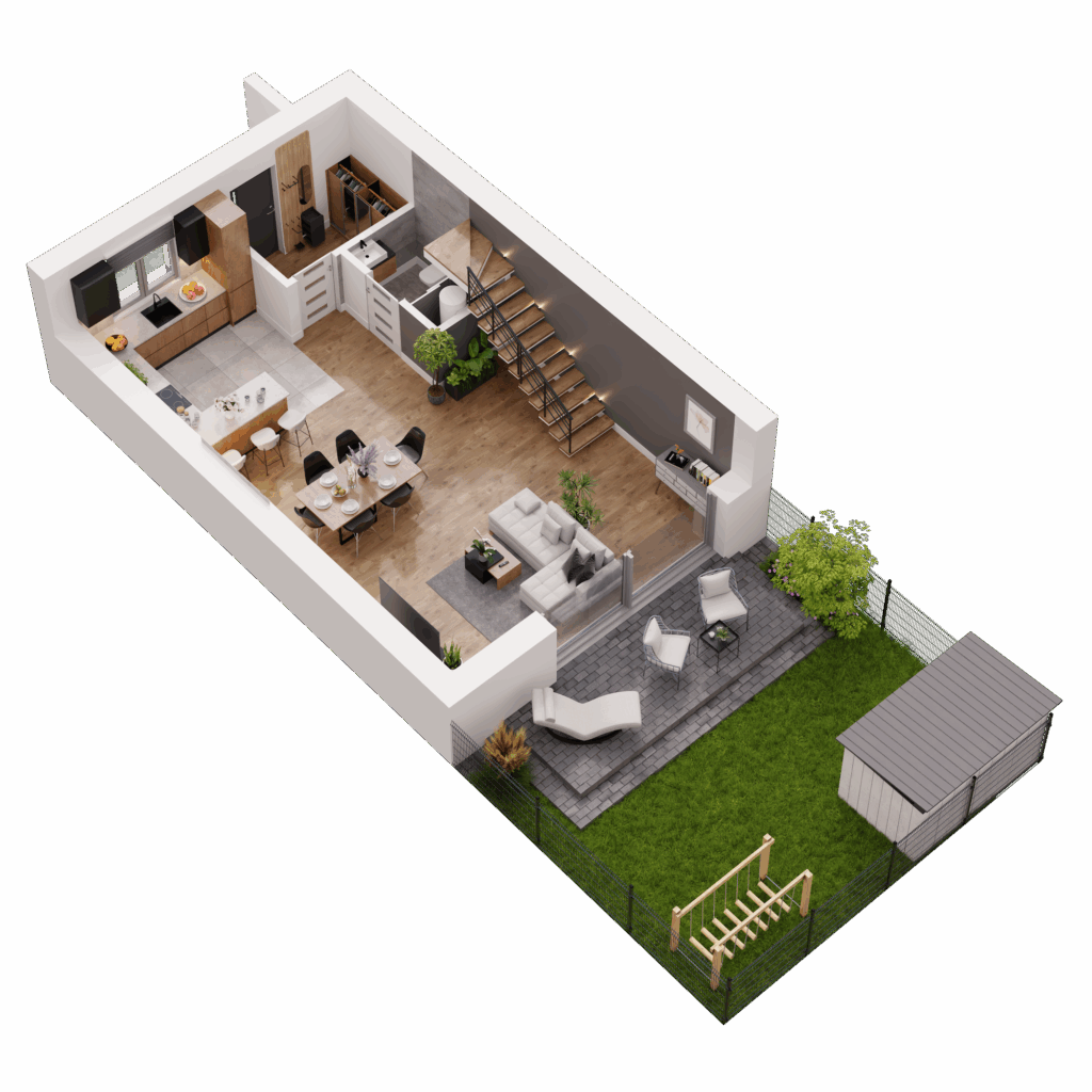 Dom o powierzchni 138 m² oferuje Ci przestrzeń, którą łatwo dopasujesz do swojego stylu życia. Trzy kondygnacje, w pełni użytkowe poddasze, przestronna strefa dzienna oraz sypialnia z garderobą dają ogromne możliwości aranżacyjne. Możesz urządzić wnętrza tak, jak lubisz, bez kompromisów i ograniczeń. Potrzebujesz więcej miejsca na rodzinne spotkania, kącik do jogi, a może osobny pokój do pracy? Tutaj masz przestrzeń na wszystko, co dla Ciebie ważne!