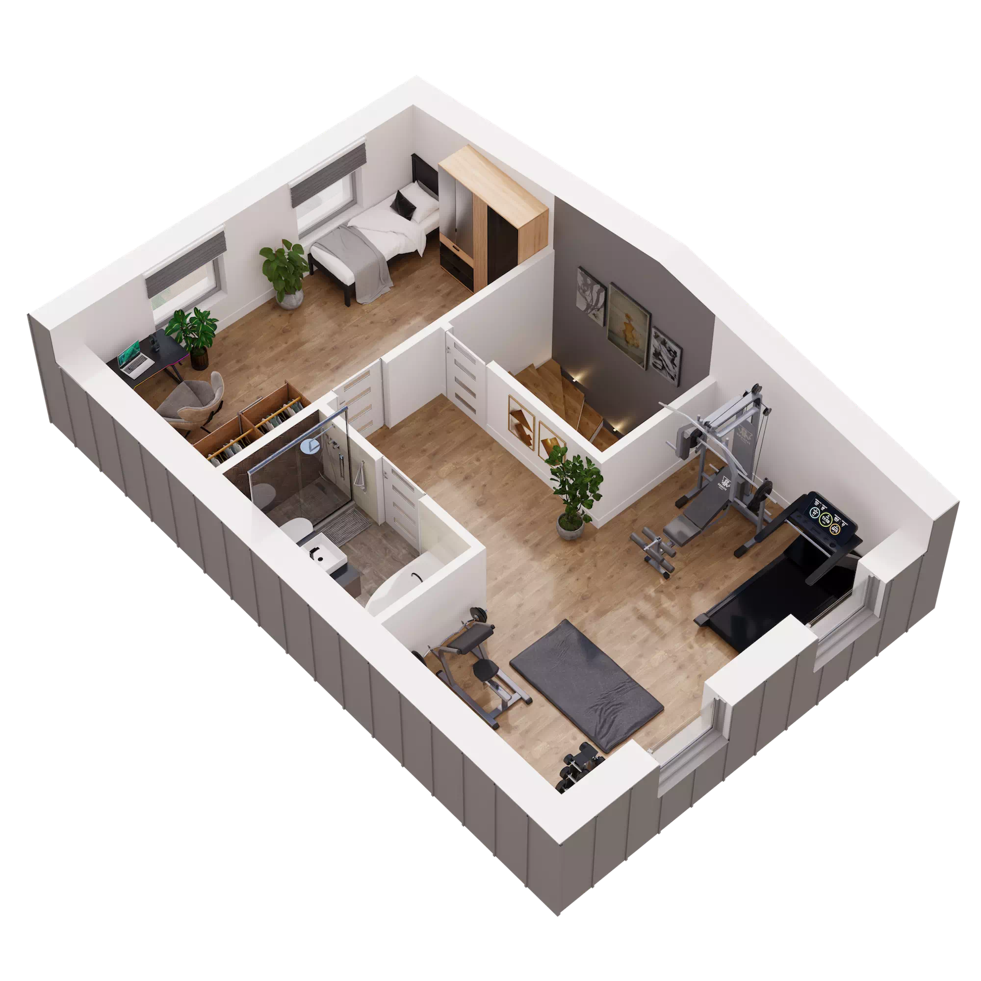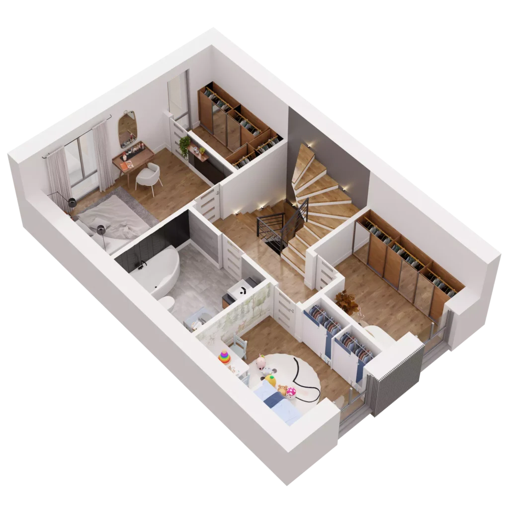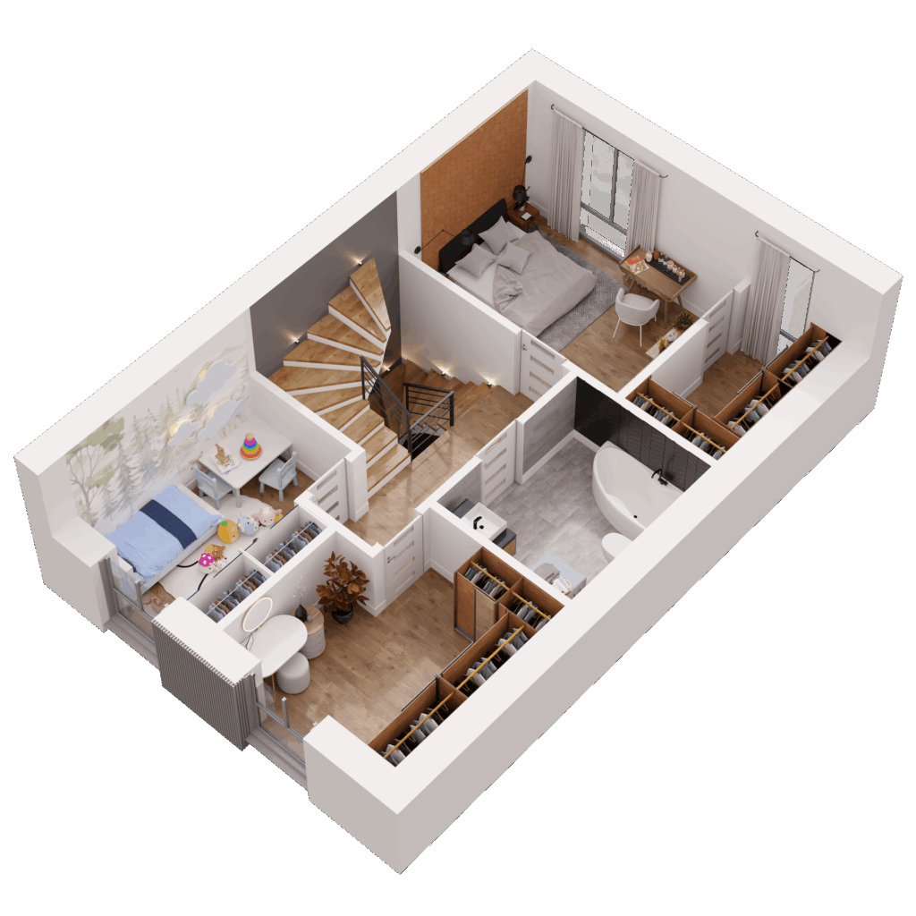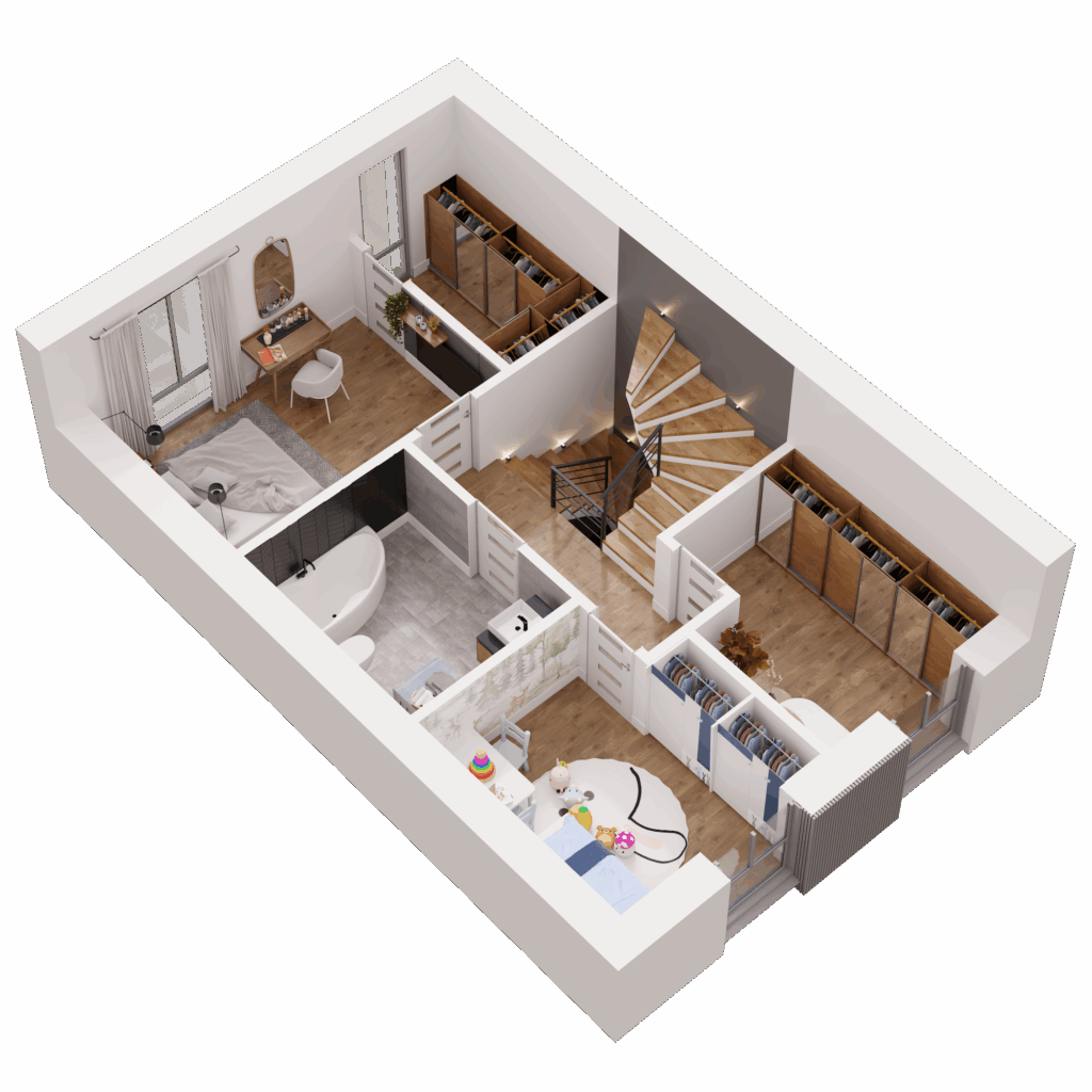 Dom o powierzchni 138 m² oferuje Ci przestrzeń, którą łatwo dopasujesz do swojego stylu życia. Trzy kondygnacje, w pełni użytkowe poddasze, przestronna strefa dzienna oraz sypialnia z garderobą dają ogromne możliwości aranżacyjne. Możesz urządzić wnętrza tak, jak lubisz, bez kompromisów i ograniczeń. Potrzebujesz więcej miejsca na rodzinne spotkania, kącik do jogi, a może osobny pokój do pracy? Tutaj masz przestrzeń na wszystko, co dla Ciebie ważne!
