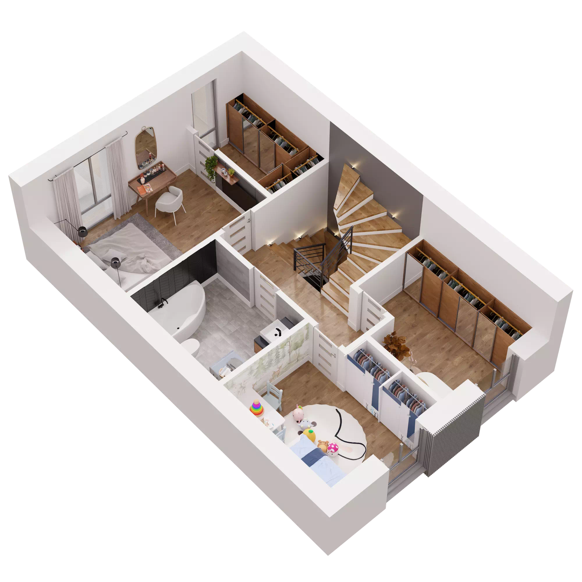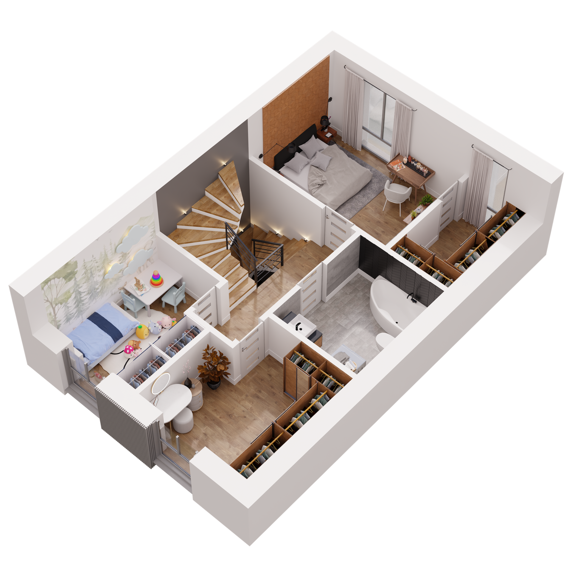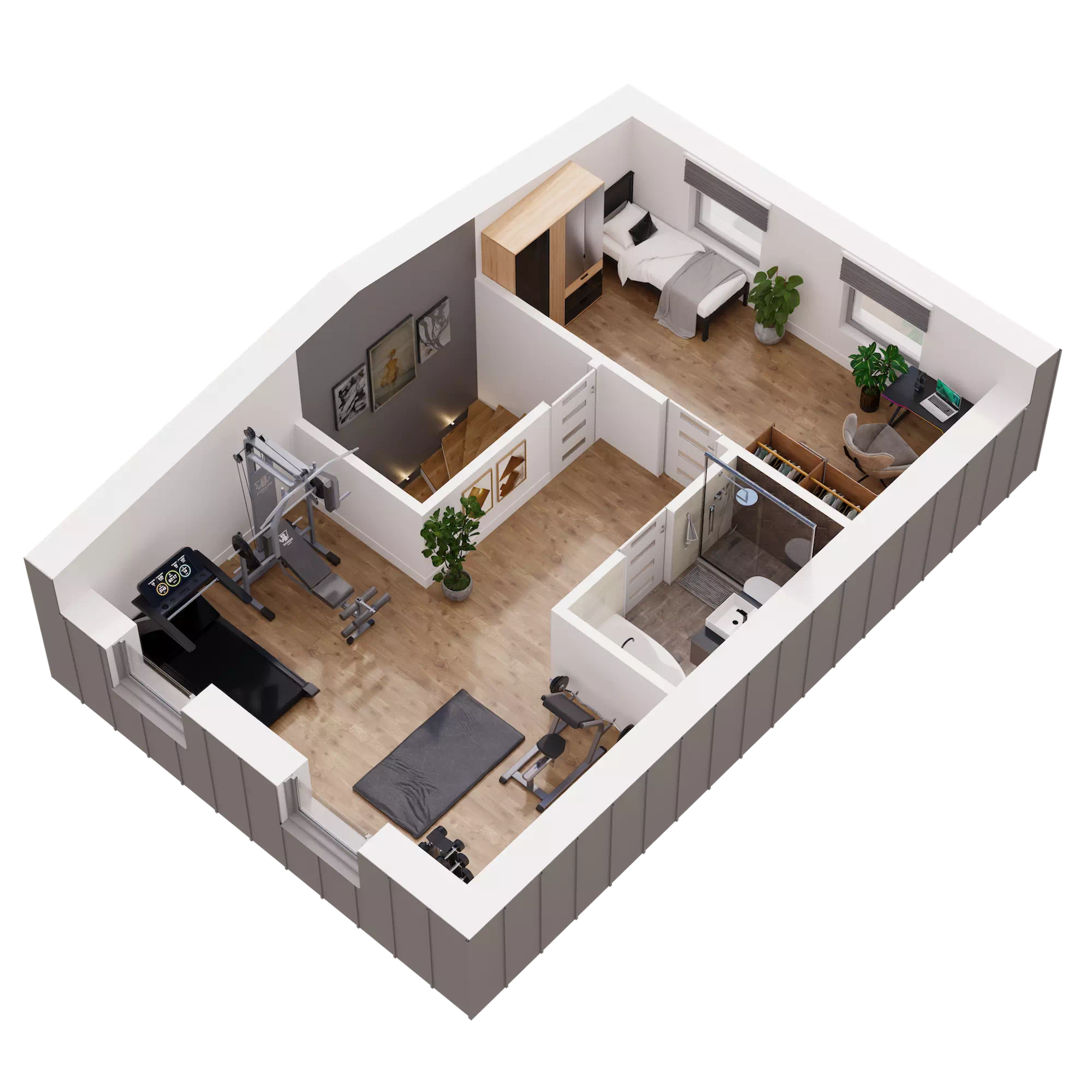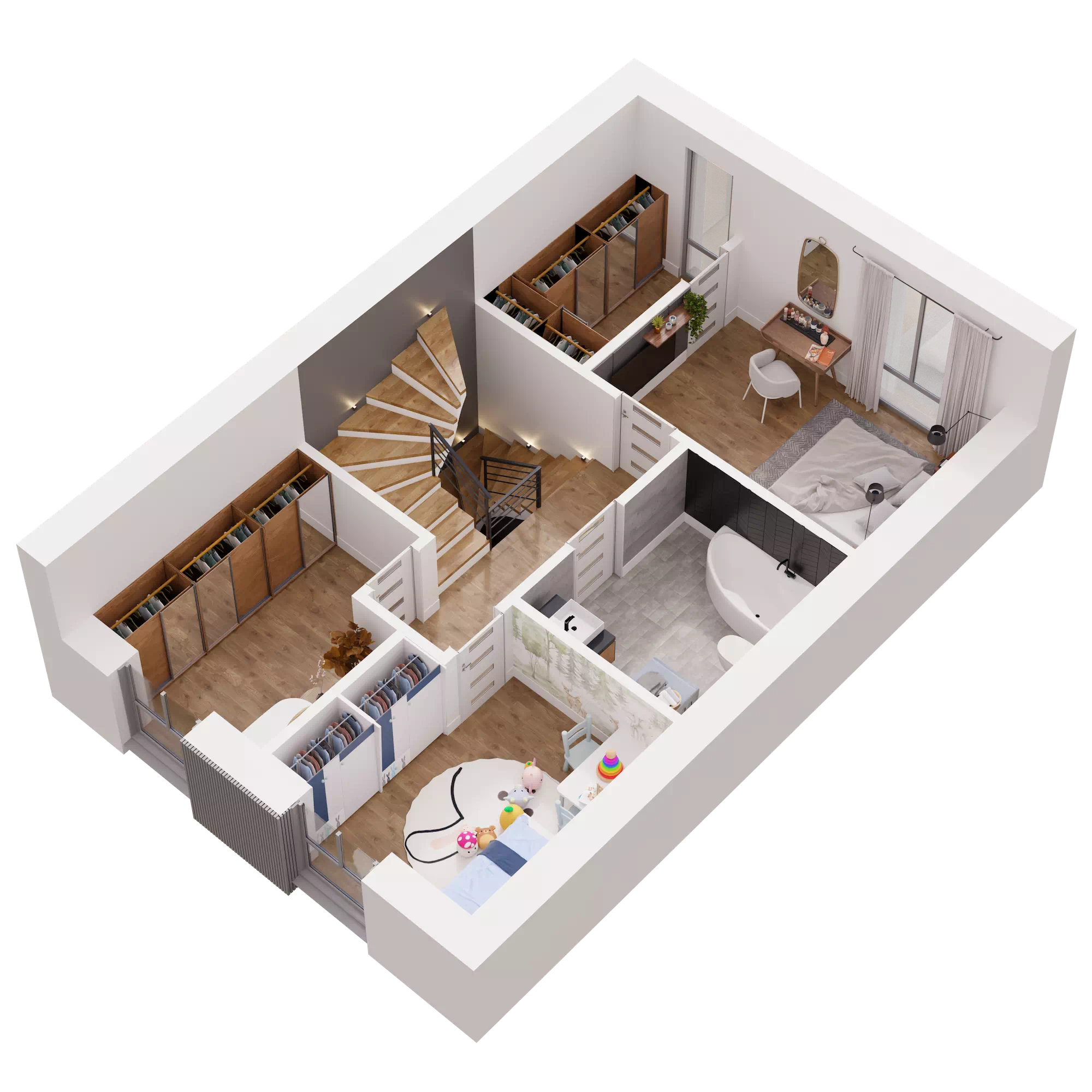 Dom o powierzchni 138 m² oferuje Ci przestrzeń, którą łatwo dopasujesz do swojego stylu życia. Trzy kondygnacje, w pełni użytkowe poddasze, przestronna strefa dzienna oraz sypialnia z garderobą dają ogromne możliwości aranżacyjne. Możesz urządzić wnętrza tak, jak lubisz, bez kompromisów i ograniczeń. Potrzebujesz więcej miejsca na rodzinne spotkania, kącik do jogi, a może osobny pokój do pracy? Tutaj masz przestrzeń na wszystko, co dla Ciebie ważne!