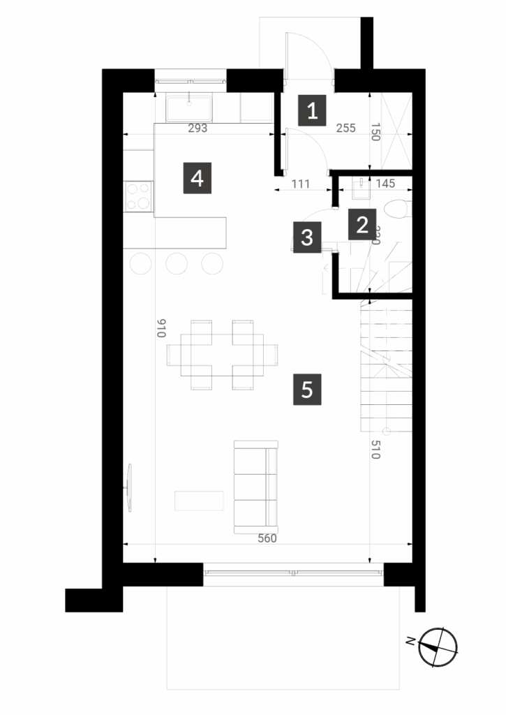 Zapomnij o problemach z parkowaniem – do każdego domu przynależą dwa prywatne miejsca postojowe. Na osiedlu przewidziano także dodatkowe miejsca dla gości, dzięki czemu przyjmowanie rodziny i znajomych nie będzie żadnym wyzwaniem. Komfort mieszkania podnosi także solidna konstrukcja budynków – podwójne ściany działowe zapewniają doskonałą izolację akustyczną, a duże okna (HS w salonie) wpuszczają mnóstwo naturalnego światła.